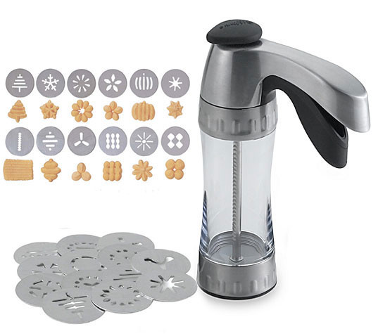 Кондитерський Прес призначений переважно для приготування печива з пісочного тіста, але насправді консистенція тіста можлива від кремоподібної до тугий. Зверніть увагу на різноманіття форм печива, які можна приготувати, використовуючи 12 різних насадок. Їх також можна використовувати для прикраси страв – тортів, тістечок, закусок.
